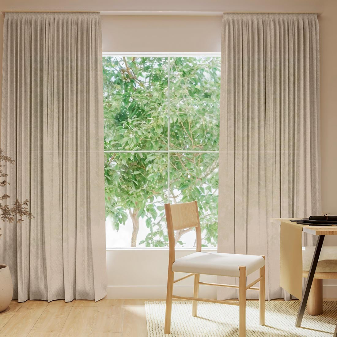 Las cortinas de tela Albarca proporcionan elegancia natural para tu hogar, son ligeras, naturales y con caída suave.